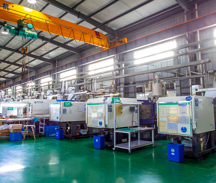 Die Produktionswerkstatt ist mit 28 Spritzgussmaschinen und 5 Blasformmaschinen ausgestattet. Die Spritzgussmaschinen sind in verschiedenen Modellen mit Klemmkräften von 80 t bis 1600 t erhältlich. Durch Hochdruckspritzgießen werden verschiedene hochpräzise Feststoffe hergestellt. Die Blasformwerkstatt ist auf die Herstellung verschiedener hohler Blasformprodukte spezialisiert und erfüllt unterschiedliche Spezifikationsanforderungen mit stabiler und effizienter Qualität.