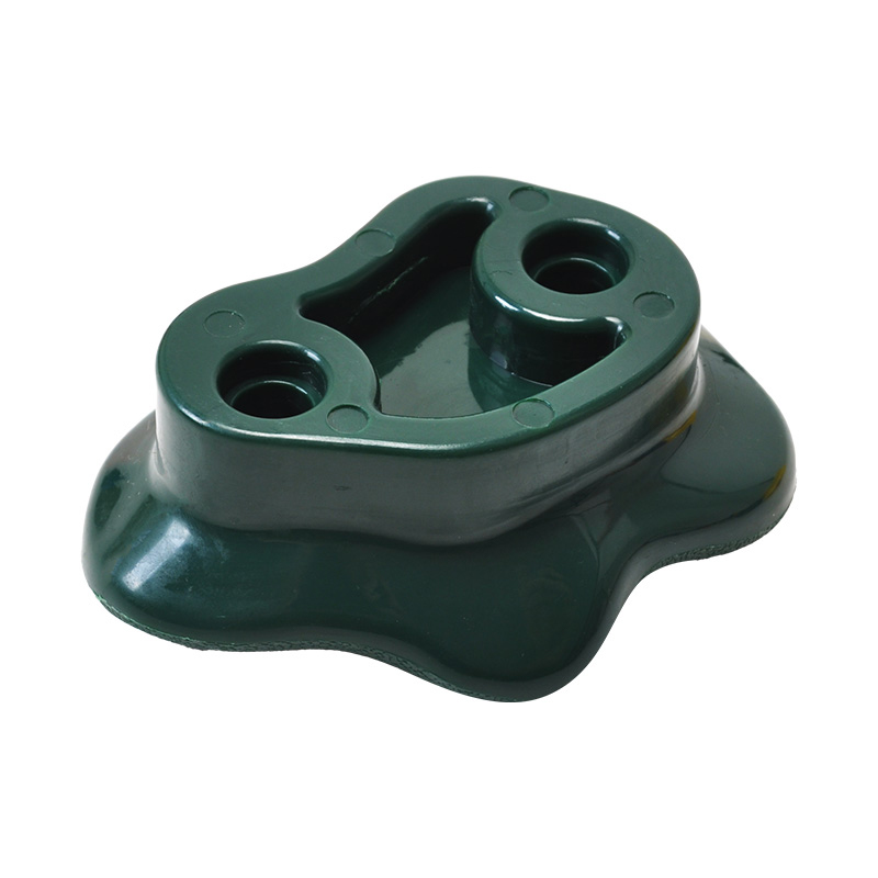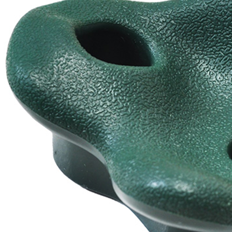 Diese mehrfarbigen Klettergriffe aus Polypropylen sind spritzgegossen und in fünf Farben (Rot, Orange, Gelb, Grün und Blau) und drei verschiedenen Formen erhältlich. Die Steine verfügen über eine Handflächenabdruck-Simulationstechnologie mit rutschfesten, strukturierten Oberflächen, die die Reibung der Hand eines Erwachsenen nachahmen und so für einfaches Greifen sorgen. Jedes Gestein misst etwa 4,2 Zoll x 3,4 Zoll und ist mit rostfreien Bolzen aus verzinkter Legierung ausgestattet, die 300 Pfund pro Laderaum tragen können, während sie ASTM F1918-Schlagtests bestehen.