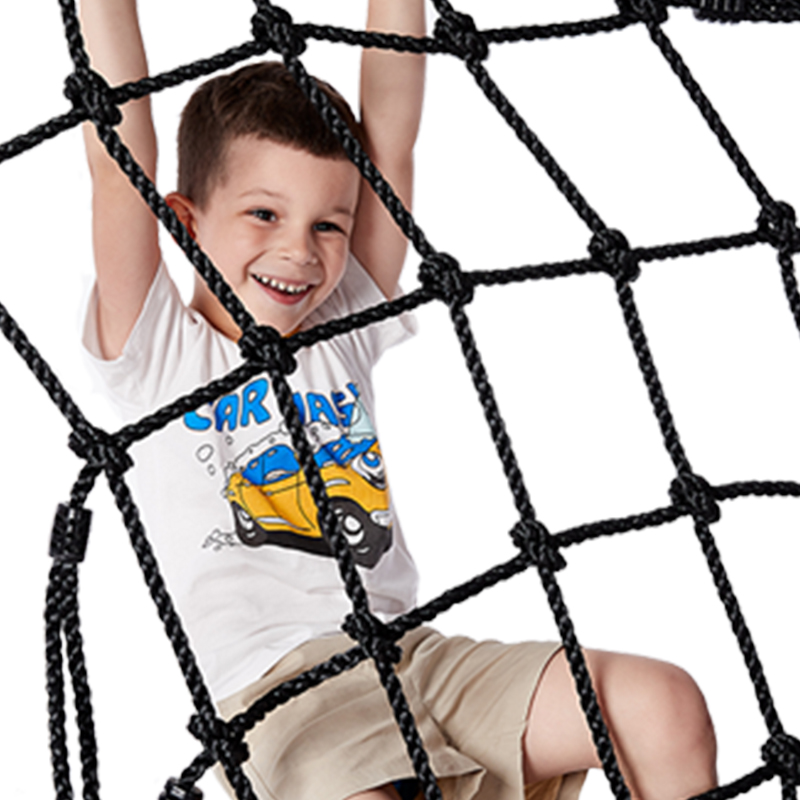 Unsere Outdoor-Abenteuer-Kletternetze bieten Optionen mit einem Seildurchmesser von 12 mm/18 mm bei gleichmäßigem Maschenabstand und Tragfähigkeit, sodass kein Durchhängen gewährleistet ist. Perfekt für Spielplätze, Fitnessstudios oder Erholung im Garten.