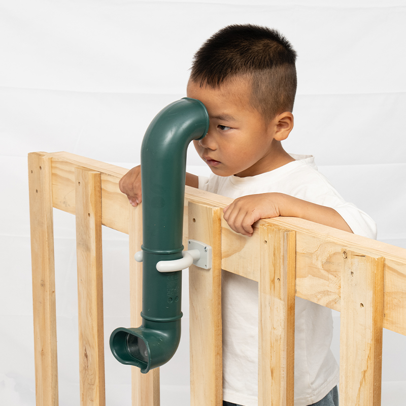 Das Holzspielplatz-Periskop, speziell für Holzspielgeräte konzipiert. Dieses Periskop besteht aus HIPS-Material und ist spritzgegossen, um eine glatte, splitterfreie Oberfläche mit abgerundeten Kanten zu gewährleisten und so die Sicherheit von Kindern zu gewährleisten.