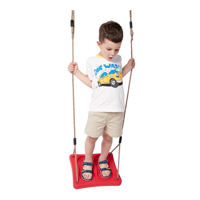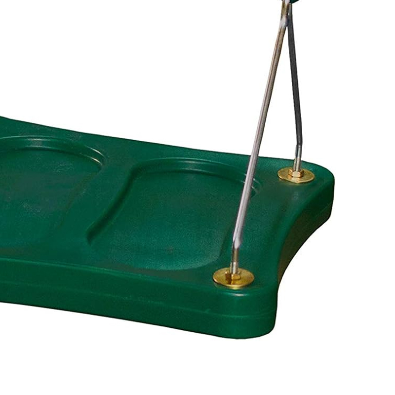 Diese Standschaukel verfügt über zwei geformte Fußabdrücke in der Mitte des Sitzes für eine präzise Gewichtsverteilung und sicheres Schwingen. Die Konstruktion besteht aus strapazierfähigem einteiligem Polyethylen (100 lb Fassungsvermögen), die rutschfesten Fußabdrücke und die vinylbeschichteten Ketten eliminieren die Gefahr von Einklemmen.